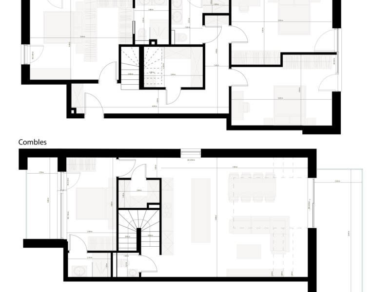 1er étage : débarras/buanderie – 3 chambres – 2 salles de douche avec WC
